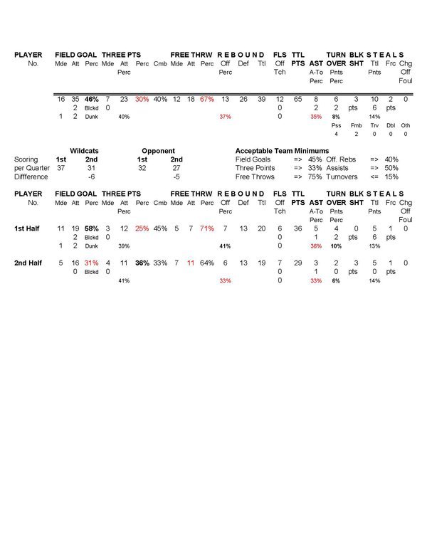 | Team Stats | 23 | 58 | 39.7 | 16 | 35 | 45.7 | 7 | 23 | 30.4 | 12 | 18 | 66.7 | 13 | 26 | 39 | 8 | 6 | 1.3 | 10 | 3 | 2 | 12 | 65 | ||