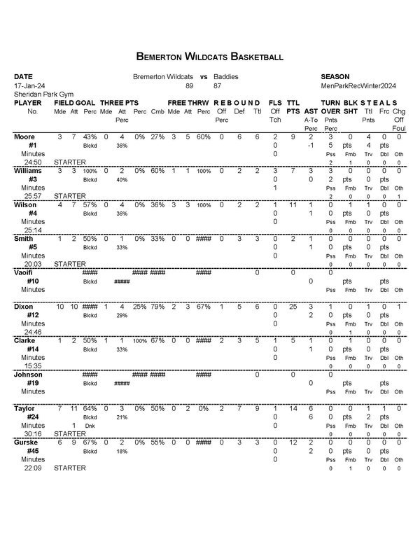 | 1 | Moore, D'Angelo | 1 | 3 | 11 | 27.3 | 3 | 7 | 42.9 | 4 | .0 | 3 | 5 | 60.0 | 6 | 6 | 2 | 3 | .7 | 4 | 2 | 9 | ||||||